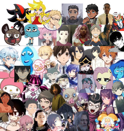me my melody, aether, sunny/omori, fluttershy, draculaura, dogs, (all) clowns, sharks, angels